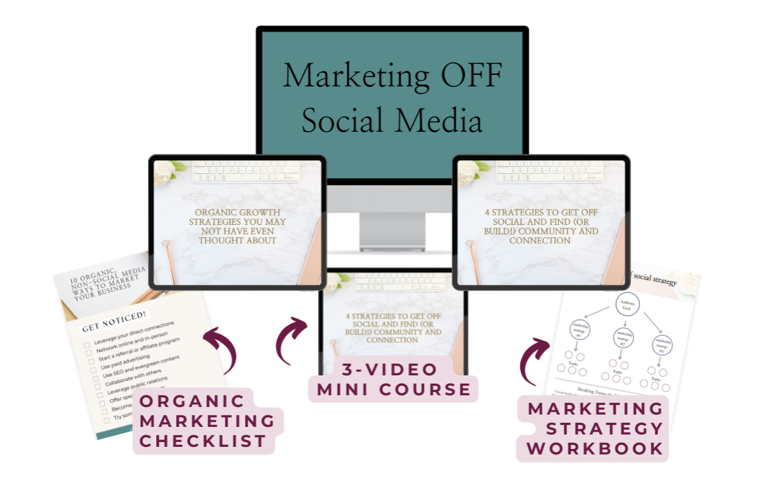 You will walk away from this 3-video mini course feeling empowered to spend intentional time where you want to in business and will have the tools to either 1) get off social media for good or 2) limit it to what you actually want to do on social rather than all the “have-to-dos.”